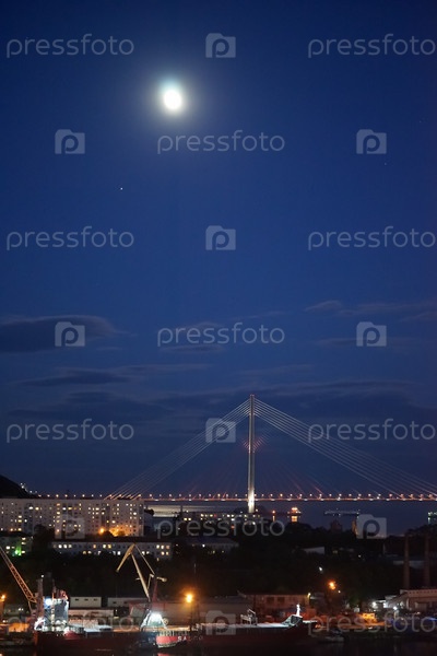 Ночной пейзаж с видом на бухту Диомида и Русский мост