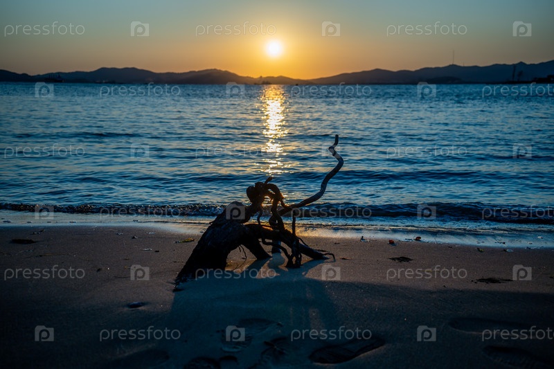 Морской пейзаж с видом на пляж и закат