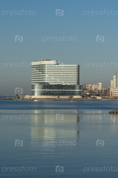 Морской пейзаж с видом на побережье и архитектуру города