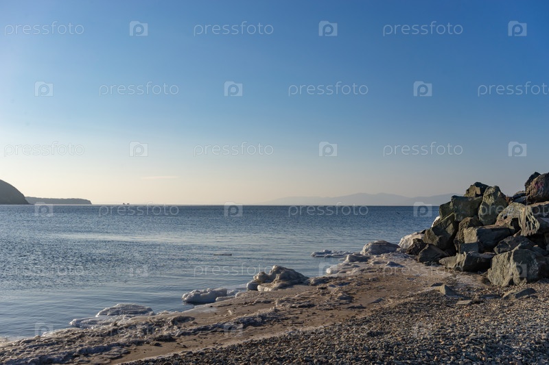 Морской пейзаж со скалистым побережьем. Владивосток