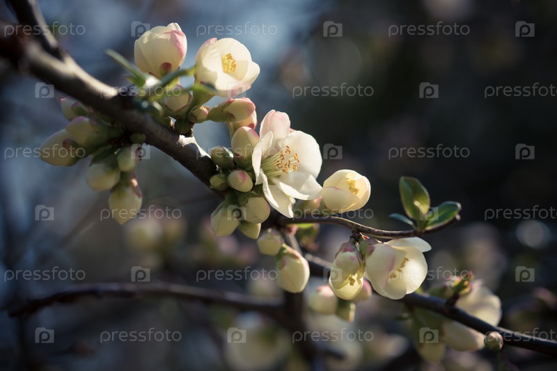 Ветка с нежными белыми цветами на темном фоне
