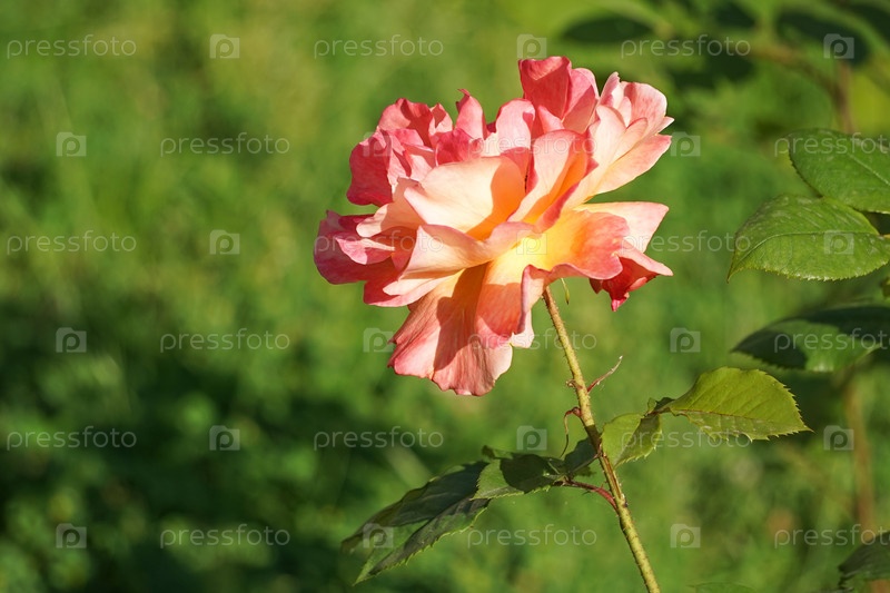 Цветочная пышная оранжевая роза на размытом зеленом фоне