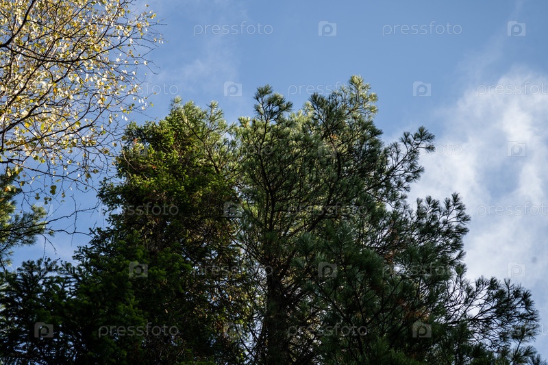 Природный ландшафт с видом на осенние деревья на фоне неба