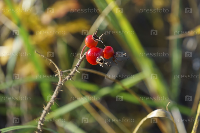 Плоды красного шиповника на размытом фоне