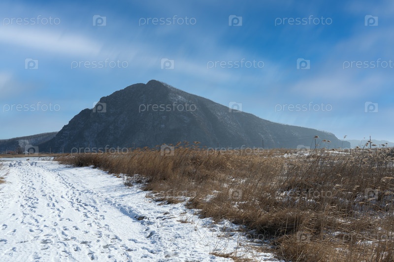 Пейзаж со снежной дорогой на Сестринскую горку. Находка, Россия