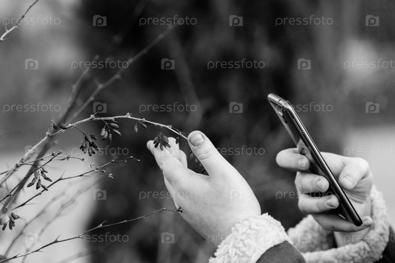 Рука девушки со смартфоном фотографирует