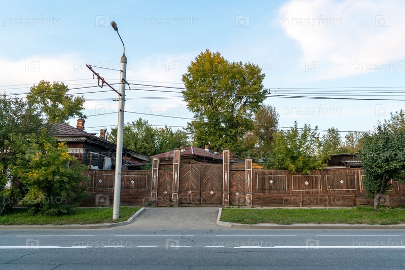 Городской пейзаж с видом на деревянные дома