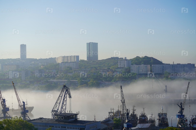 Городской пейзаж с видом на залив Диомида и порт