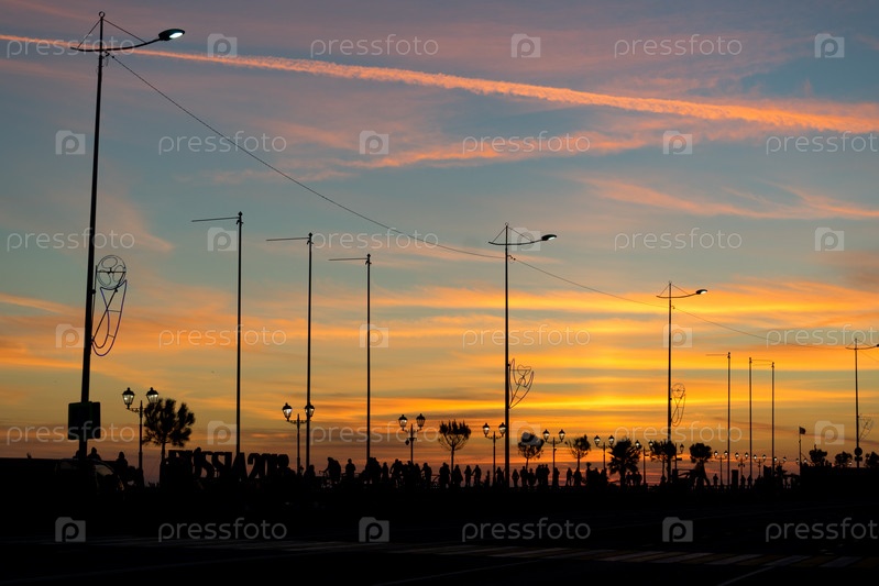 Сочи. Россия. Городская набережная с фонарями, деревьями и людьми