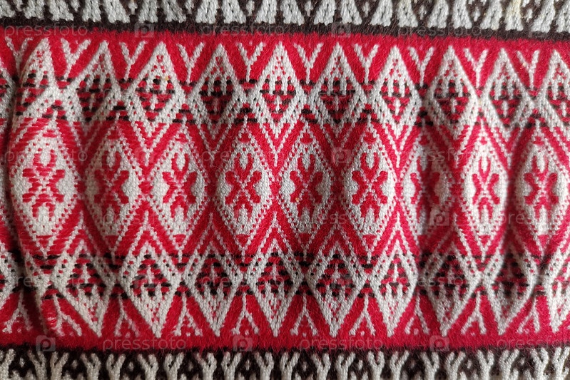 Фон с текстилем и национальными красными и белыми орнаментами
