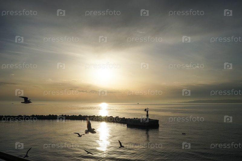 Керченский пролив на закате, вид на море