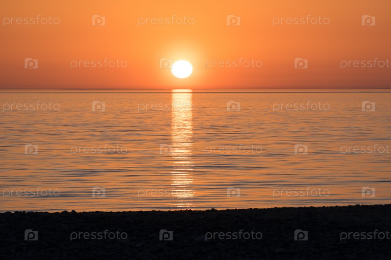 Яркий оранжевый закат над спокойным морем в безветренную погоду