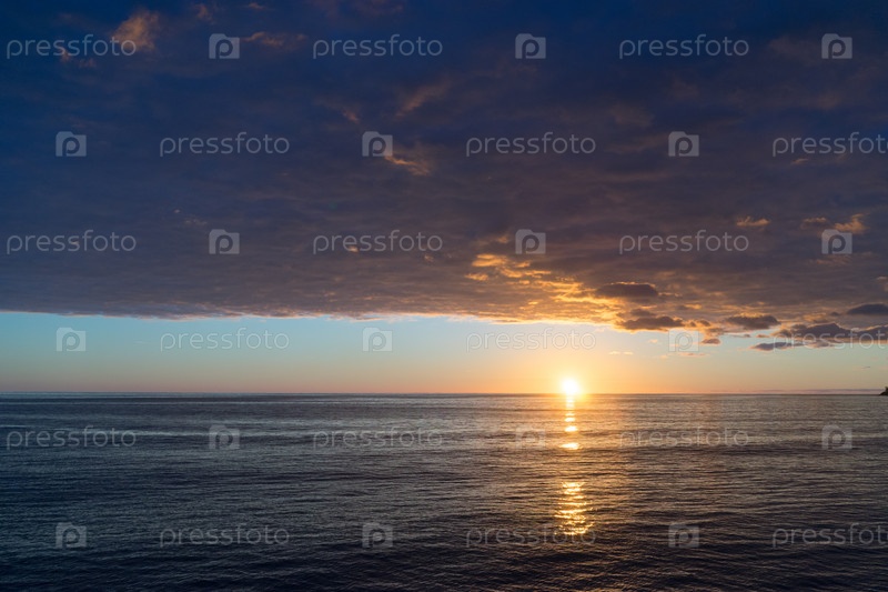 Морской пейзаж на закате с тяжелыми тучами