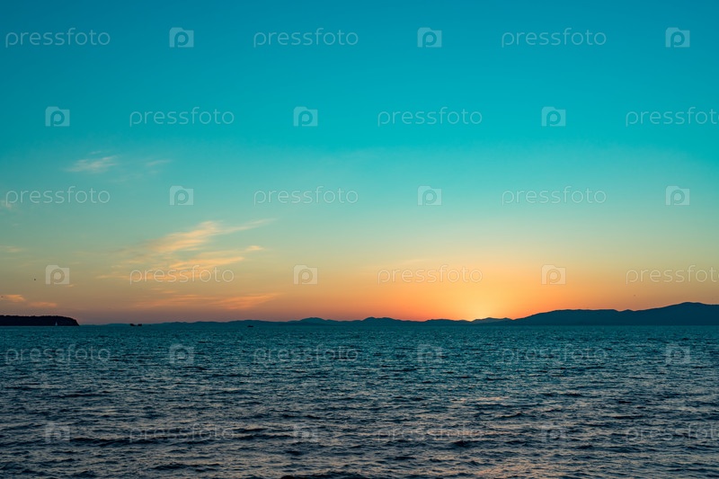 Морской пейзаж с видом на закат над Тихим океаном