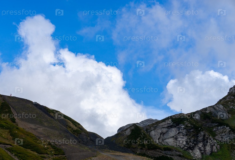 Красивый горный пейзаж на фоне голубого неба с облаками