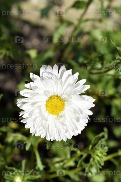 Красно-белые цветы астры сложноцветные в саду