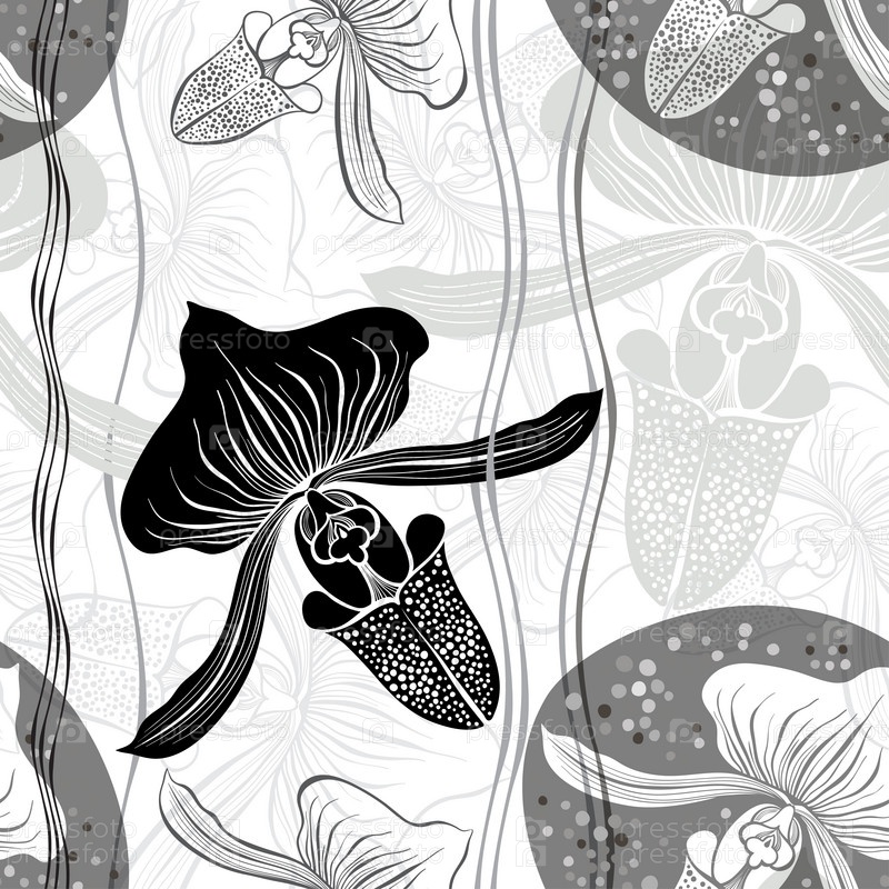 Монохромный цветочный бесшовный узор с нарисованными вручную орхидеями. Векторный дизайн