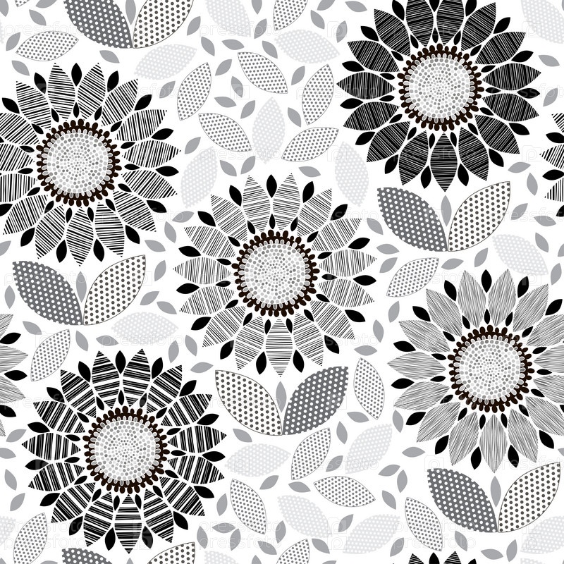 Монохромный бесшовный рисунок абстрактных цветов