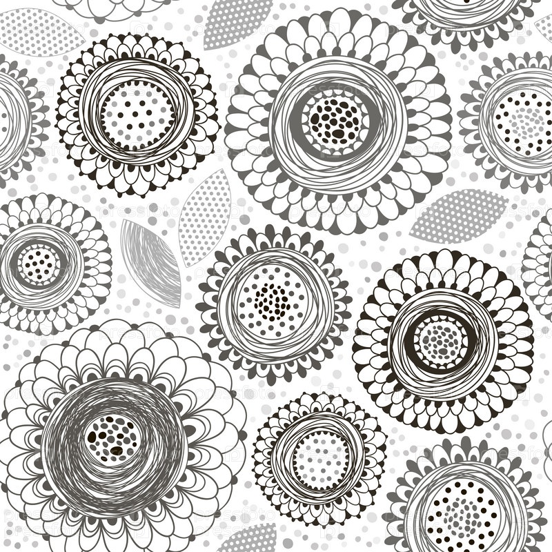 Монохромный бесшовный рисунок абстрактных цветов