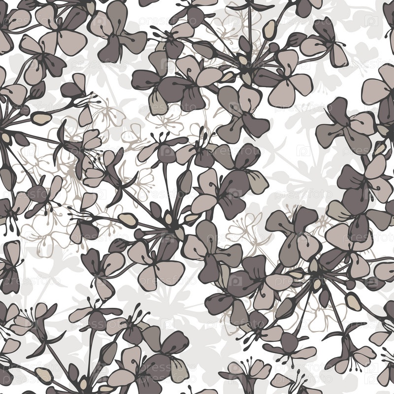 Монохромный бесшовный рисунок абстрактных цветов. Ручной обращается цветочный фон