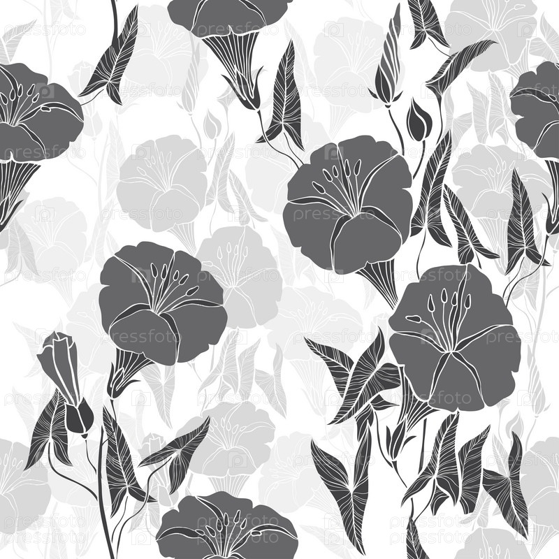 Бесшовный рисунок с вьюнком. Монохромный векторный фон