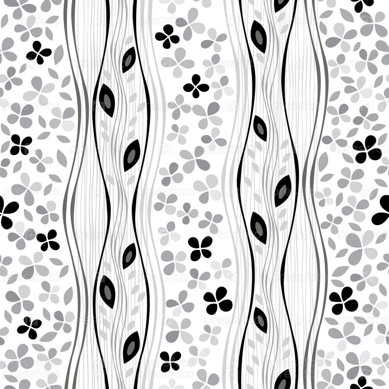 Абстрактный бесшовный цветочный узор. Черно-белый фон