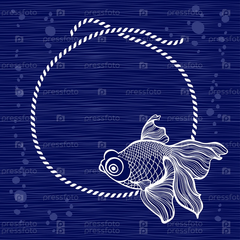 Рамка с веревкой и рыбой на синем фоне. Векторная иллюстрация от руки