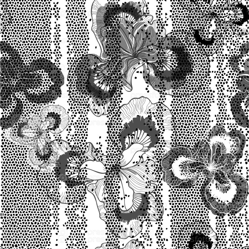 Монохромный цветочный бесшовный узор с нарисованными вручную ирисами. Векторный дизайн