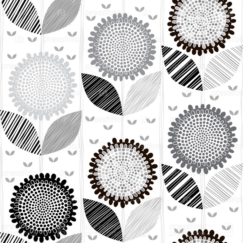 Монохромный бесшовный рисунок абстрактных цветов