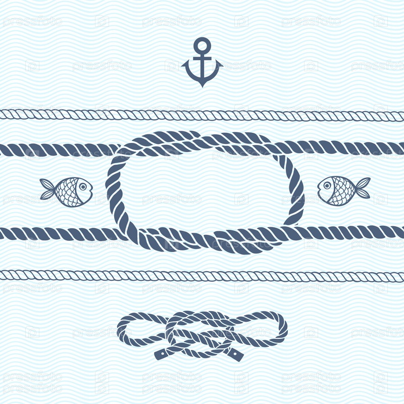 Морская карта с рамой, якорем, морскими узлами, веревками и рыбой