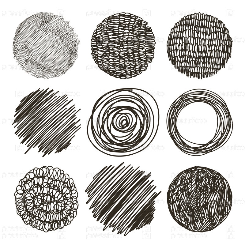 Векторный набор нарисованных вручную кругов. Эскиз, набор текстур. Элементы для вашего дизайна