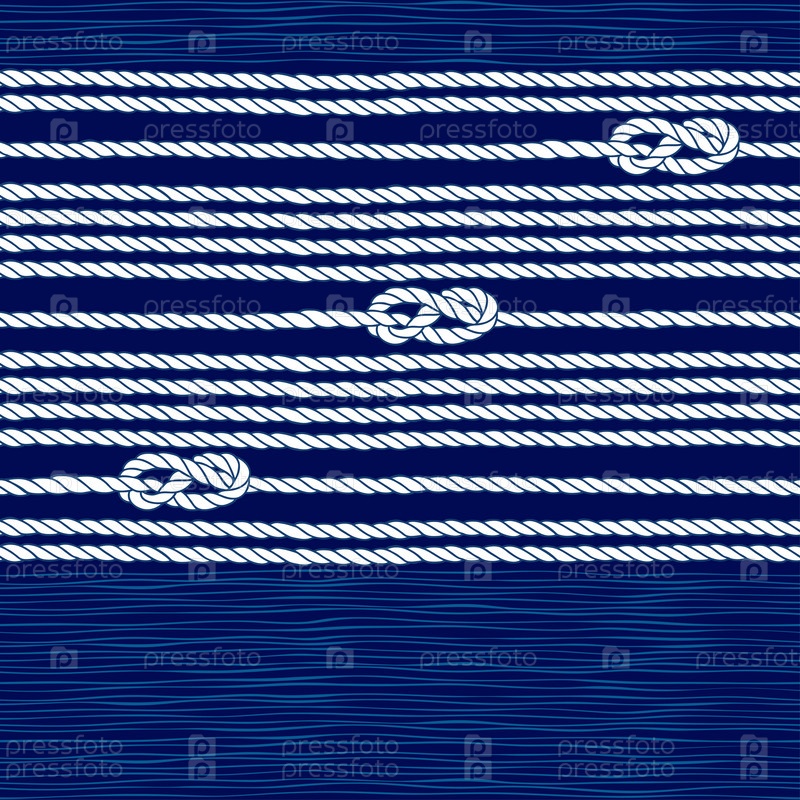 Бесшовный рисунок с морской веревкой и узлами на синем фоне