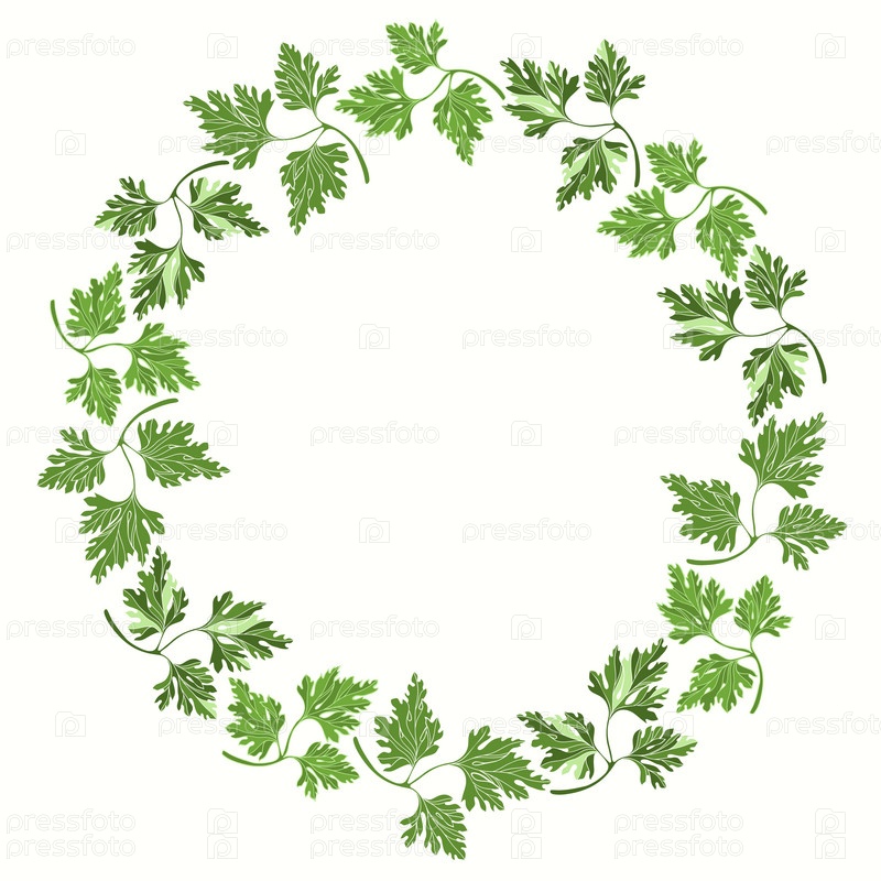 Круглая рамка с петрушкой на белом фоне. Ручная рисованная векторная иллюстрация