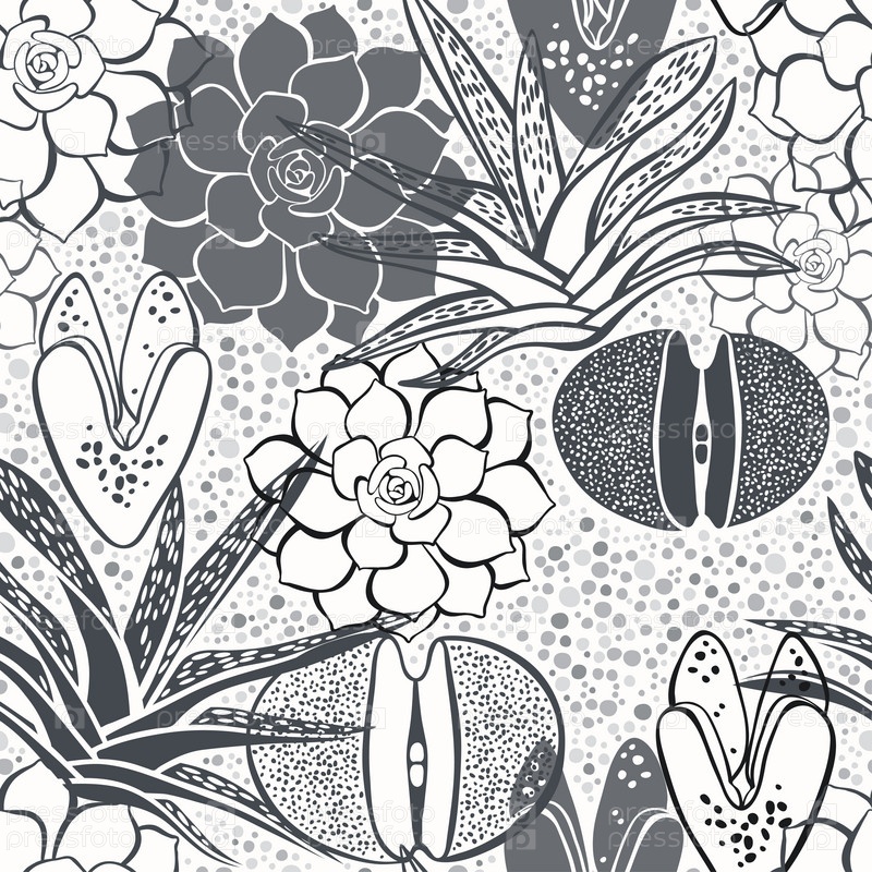 Монохромный бесшовный рисунок с суккулентами