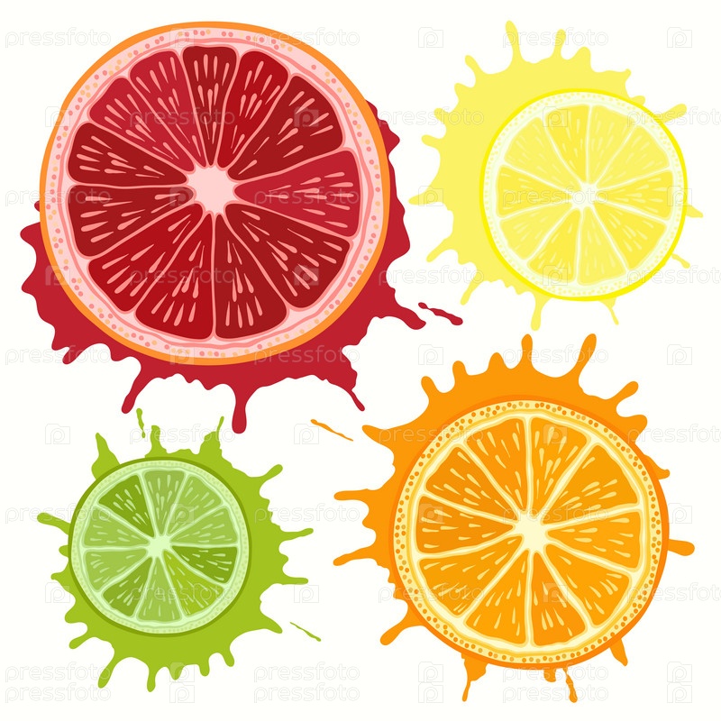 Набор цитрусовых - грейпфрут, апельсин, лайм и лимон. Ручная иллюстрация