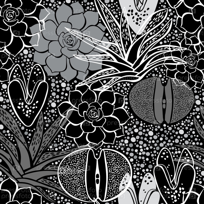 Монохромный бесшовный рисунок с суккулентами