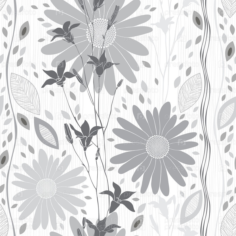 Монохромный бесшовный узор из абстрактных цветов и листьев