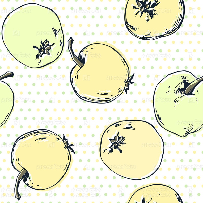 Бесшовный рисунок с нарисованными вручную яблоками. Векторная иллюстрация