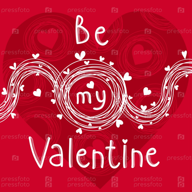 Будь моей Валентинкой с надписью "Поздравительная открытка" на красном фоне, векторная иллюстрация