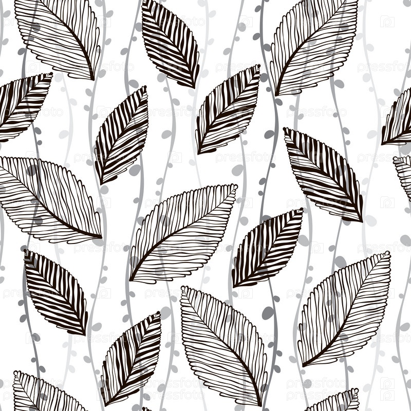 Монохромный бесшовный рисунок абстрактных листьев
