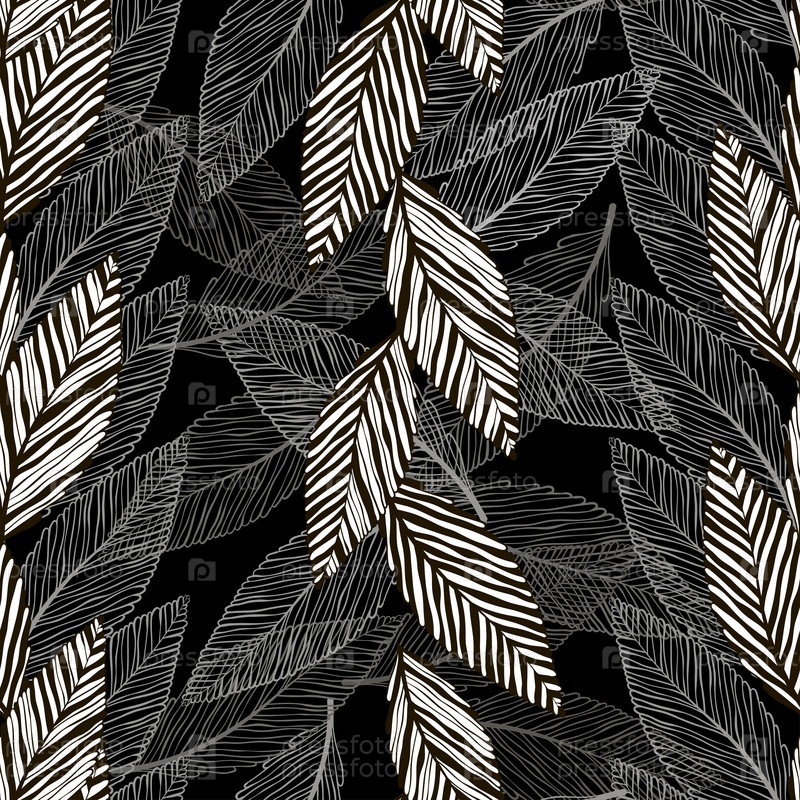 Монохромный бесшовный рисунок абстрактных листьев