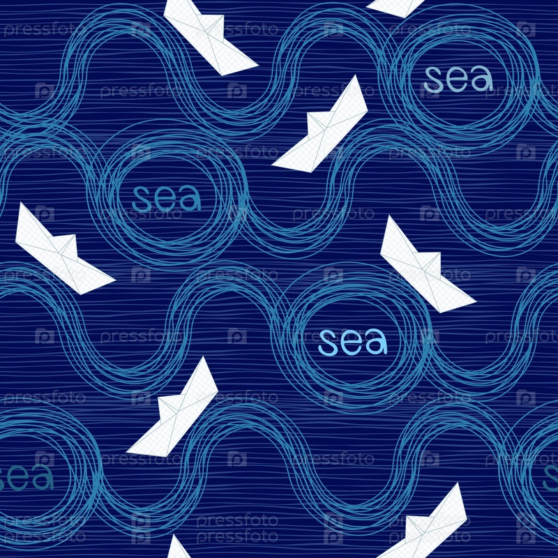 Бесшовный рисунок с бумажными кораблями и надписями