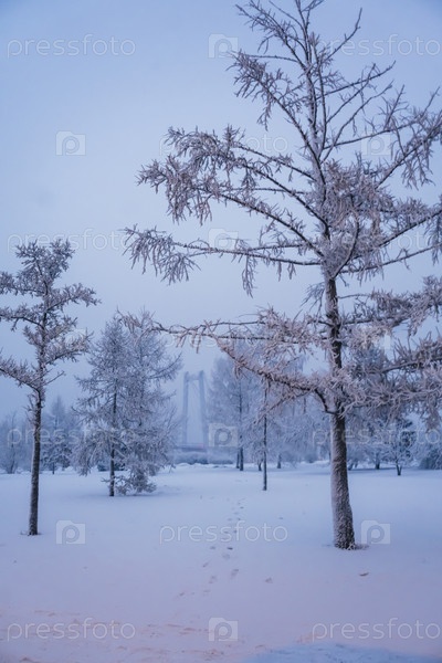 На берегу Енимея в морозный зимнгий день