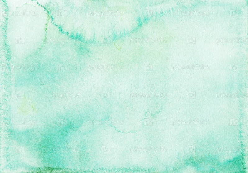 Акварель светло-зеленая текстура фона. Пастельный изумрудный акварельный фон, расписанный вручную