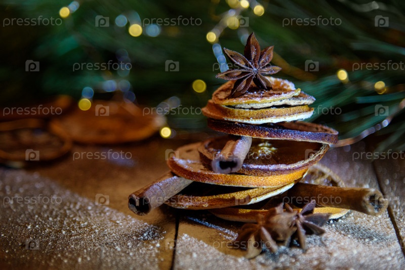 Елка из сушеных апельсинов, палочек корицы и семян аниса