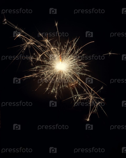 Сверкающий горящий бенгальский огонь на черном