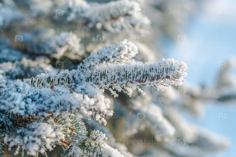 Ветви голубой ели покрыты снегом
