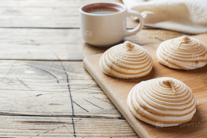 Зефир ванильный зефир с карамелью на деревянном столе. Выборочный фокус. Скопируйте пространство