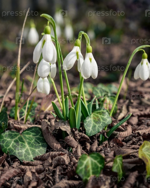 Первые весенние подснежники в дикой природе. Цветы Галантуса