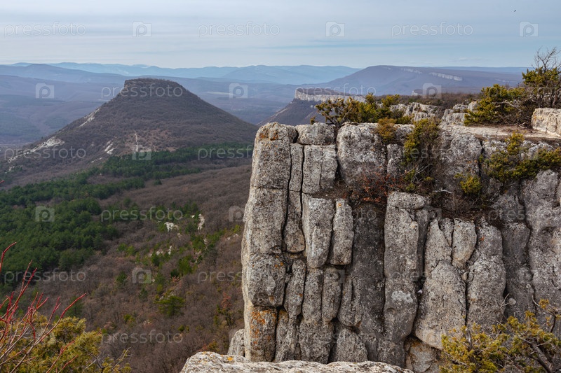 Вид с Бешик-Тау на священную гору караимов весной. Бахчисарай, Крым